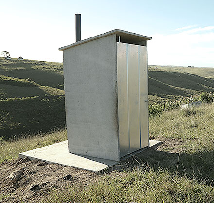 The Cemforce VIP Toilet consists of light weight reinforced cement, panel-type toilet superstructure, bolted onto a floor slab, over an unlined, partially lined, or fully-lined pit.