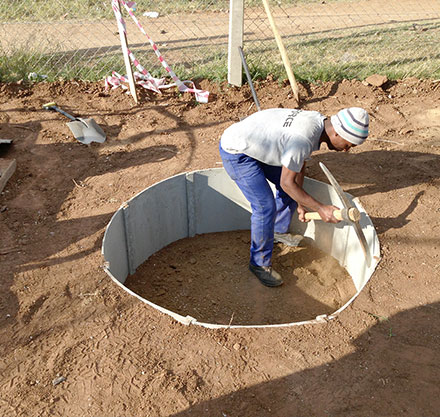 - For stable soil conditions: Round pit with 500 mm deep interlocking GRC panel pit collar